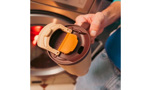 Innovatief rietje dat volledig in de tumbler verdwijnt voor compact en hygiënisch gebruik.