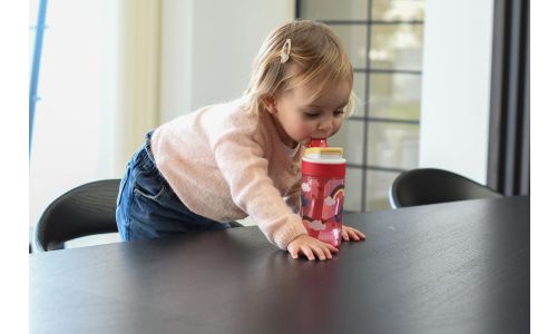 Drinken van de Lagoon waterfles is kinderspel – en dat mag je in het geval van Lagoon Kids gerust letterlijk nemen. Je kinderen kunnen naar hartenlust spelen, terwijl ze af en toe van hun waterfles drinken. De fles met rietje is makkelijk te gebruiken dankzij het spout deksel en ziet er superleuk uit. Wedden dat je kleintjes apetrots zijn op hun nieuwste aanwinst? Om de Lagoon waterfles weer schoon te maken voor een dag vol avontuur, steek je hem gewoon in de vaatwasmachine.